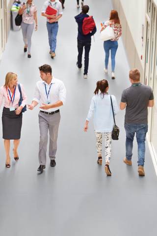 Busy Hallway In College With Students